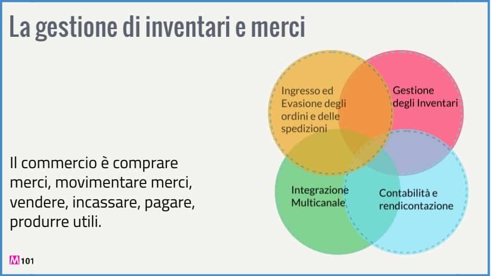 Quattro grandi aree decisive per la gestione delle vendite: dall’ingresso degli merci in arrivo, alla gestione delle vendite con l’aggiornamento degli inventari. Dalla contabilità e rendicontazione alle integrazioni multicanale.