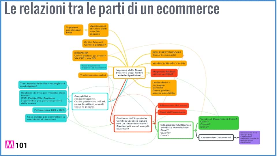 La mappa delle relazioni tra le parti di un ecommerce, per essere in grado di gestire una attività complessa come è qualsiasi attività di vendita.