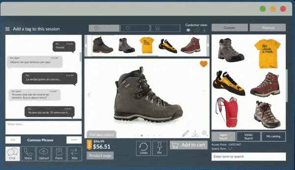 Il co-visore di Oct8ne consente agli agenti del servizio clienti ci visualizzare i prodotti visti dal cliente, di mostrare immagini e video dei prodotti in tempo reali, senza lasciare la finestra della chat.